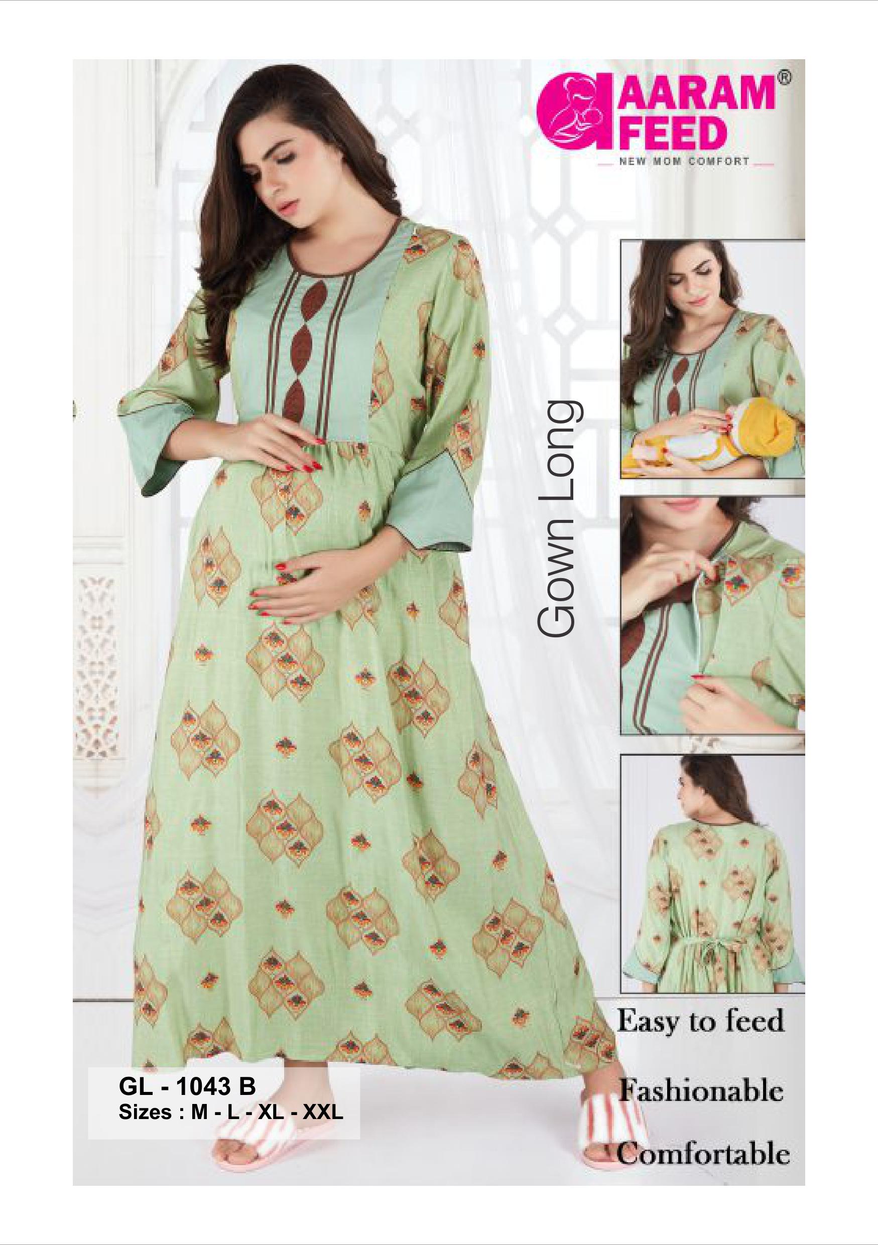 The AaramFeed Feeding Gown Long is designed to provide comfort and convenience for nursing mothers. Its extended length offers ample coverage, allowing discreet and easy breastfeeding. Crafted with soft, breathable fabric, it ensures gentle skin contact and all-day comfort. This gown supports a practical and relaxed feeding experience, making it an essential addition to any nursing wardrobe.