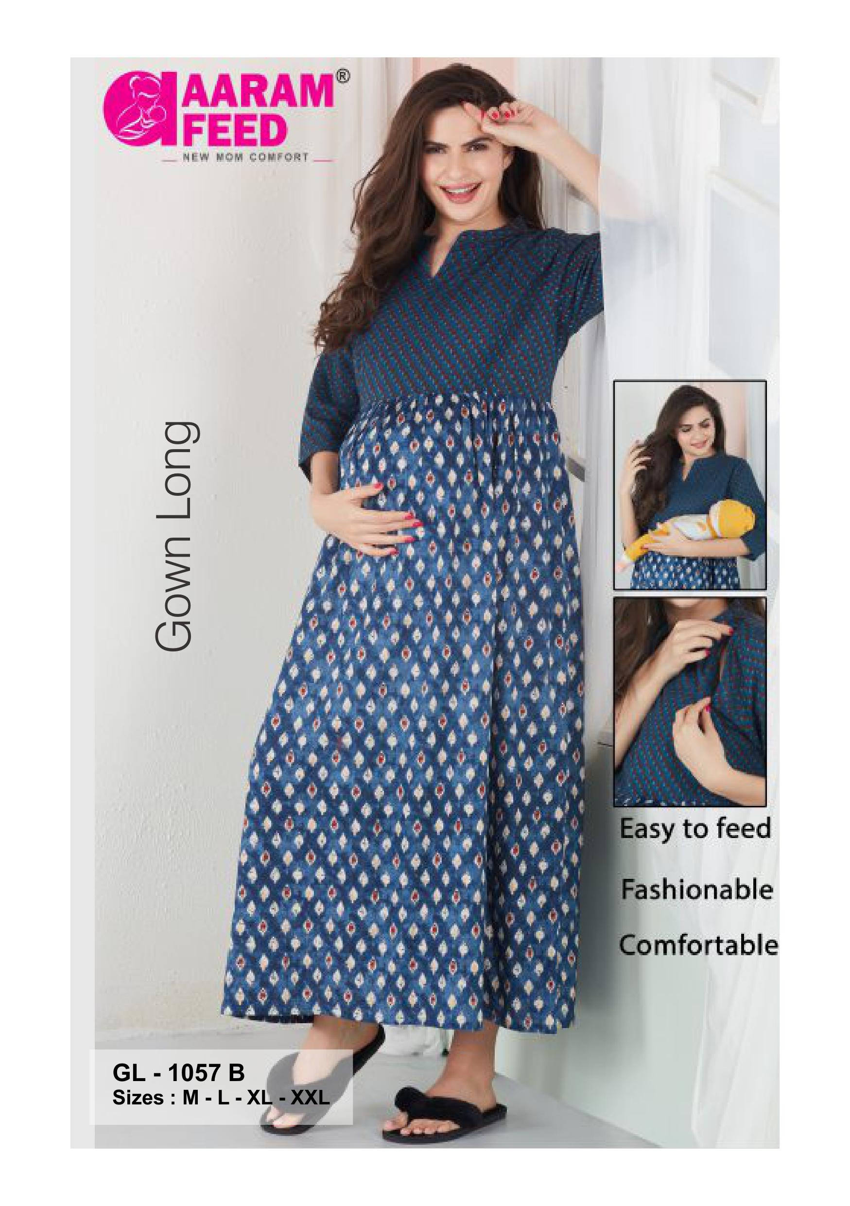 - The AaramFeed Feeding Gown Long is designed to provide comfort and convenience for nursing mothers. Its extended length offers ample coverage, allowing discreet and easy breastfeeding. Crafted with soft, breathable fabric, it ensures gentle skin contact and all-day comfort. This gown supports a practical and relaxed feeding experience, making it an essential addition to any nursing wardrobe.