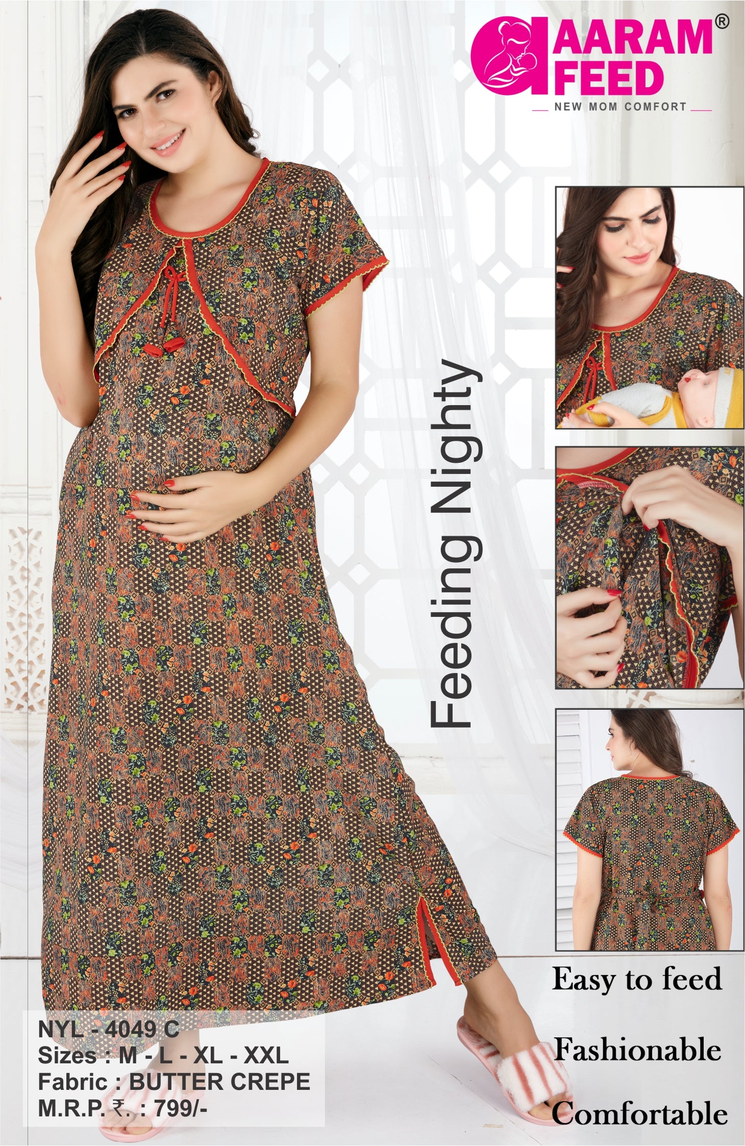 The AaramFeed Feeding Nighty offers ensures ease of breastfeeding and restful nights.
