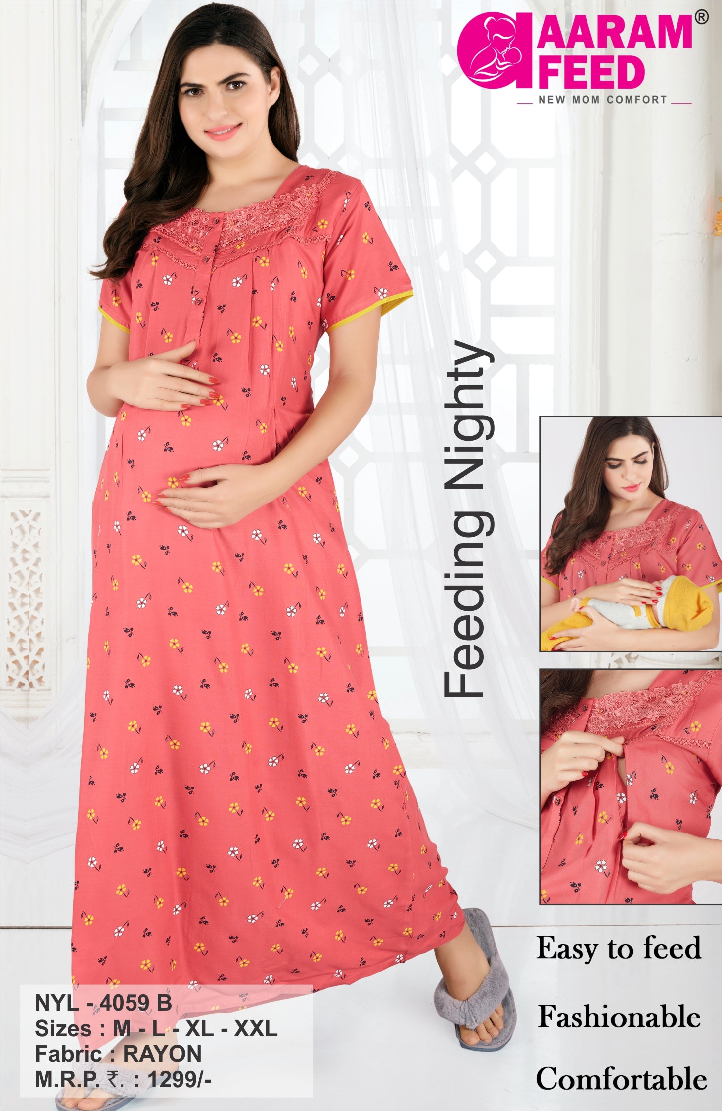 The AaramFeed Feeding Nighty offers ensures ease of breastfeeding and restful nights.
